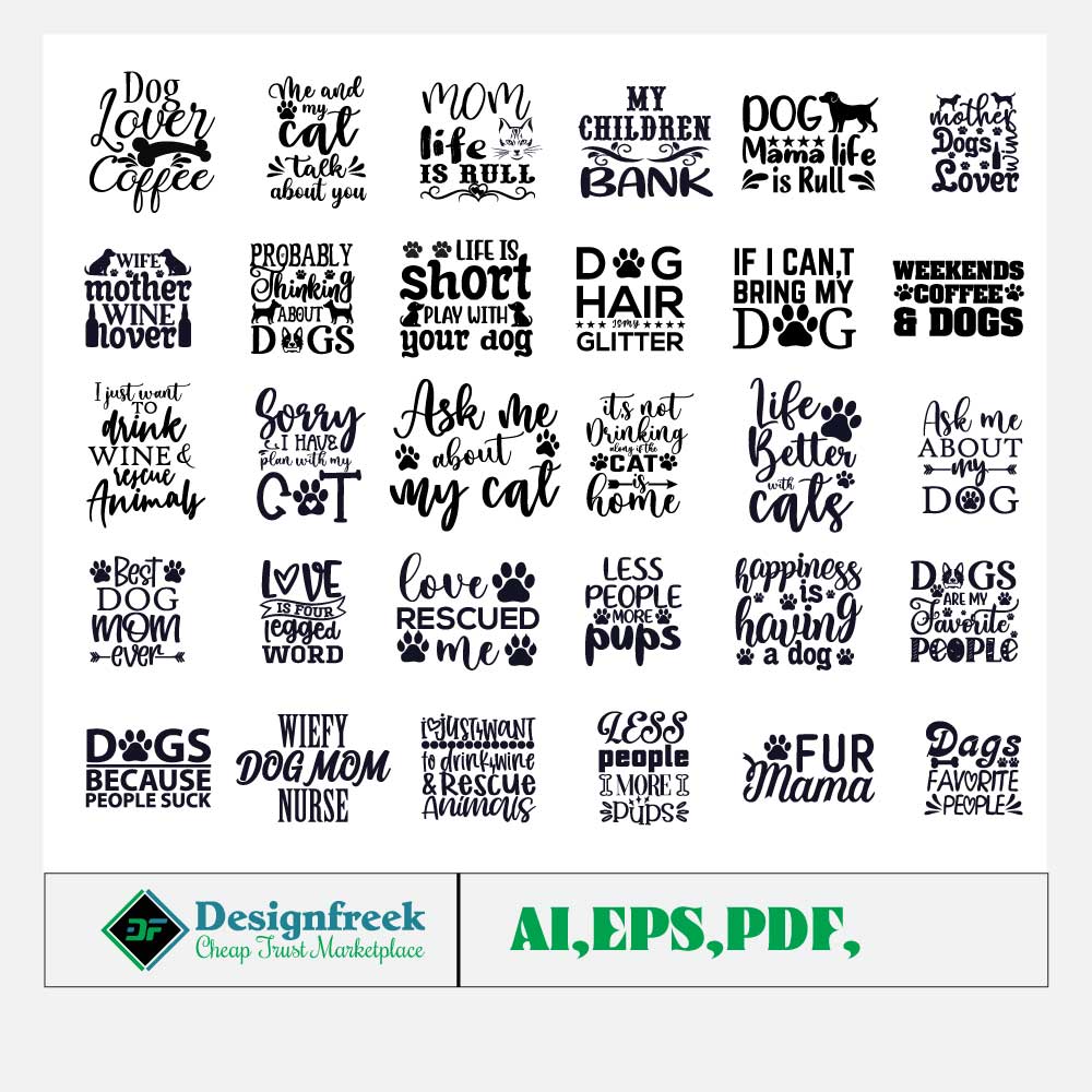 30 Dog Typography Tshirt Bundle Template Download By Pixirak,