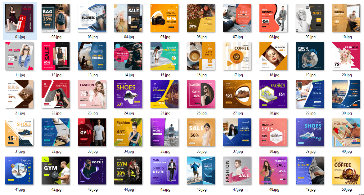 This is a professional 50 Multipurpose Promotion Instagram templates to promote on Instagram & also Facebook. The package includes 50 Photoshop designs with creative and unique layouts. Psd file size 1200×1200px.
