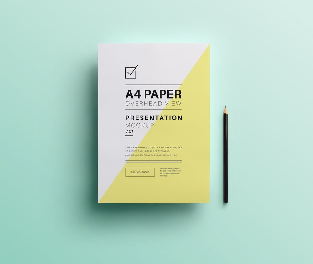 A4 paper Overhead view mockup vol 1 | By Pixirak.com |