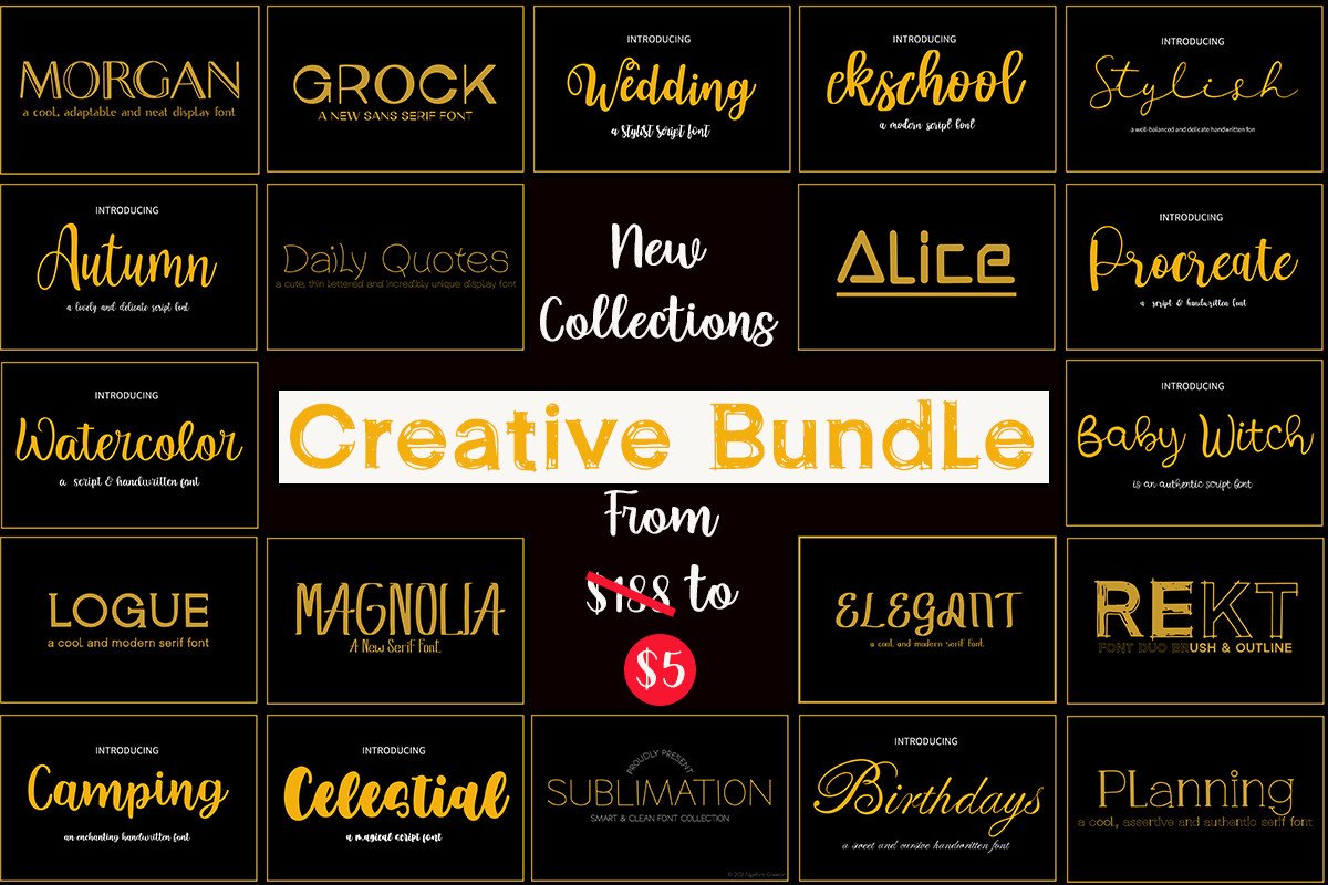 This bundle gathers 20 unique fonts, from scripts, handwriting, to serif, sans serif and display.