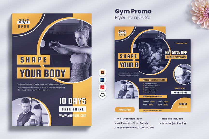 Fitness center/Health Promo Flyer Trendy ModelĀ is company enterprise brochure or flyer template will aid you to advertise your any challenge goal with elegant, fashionable, easy, minimalist {and professional} design. With skilled design you need to use this template for any form of companies, firm, company and any advertising promotion.