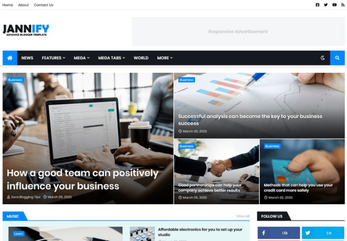 Jannify Blogger Template Free Download – Templateify | Jannify Responsive Blogger Template is an advanced theme of the Jannify Blogger Template. If you are looking for news or a web-based magazine, that is the perfect one. It works with both mobile and desktop browsers so responsively. It also has a dark mode feature to improve user experience, as per the latest requirements. It includes a browsing bar with mega-tabs, as well as a variety of sections such as feature posts. popular posts.
