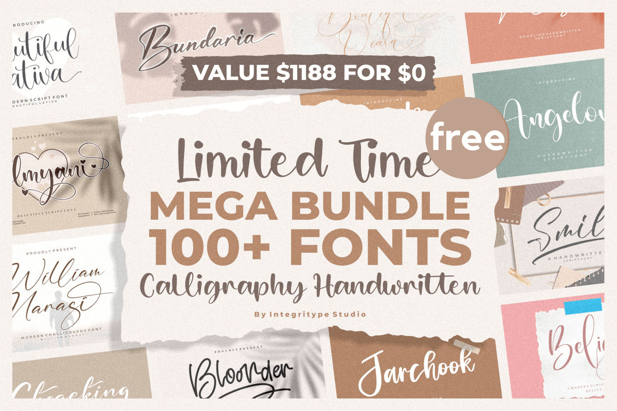 This bundle gathers 100 gorgeous handwritten fonts with a variety of styles such as calligraphy, signature, brush lettering, handwriting, and comes with hundreds of glyphs, including alternate, ligatures, swashes, and international language support. It’s the perfect to font bundle for your crafting projects that requires a handwritten touch!