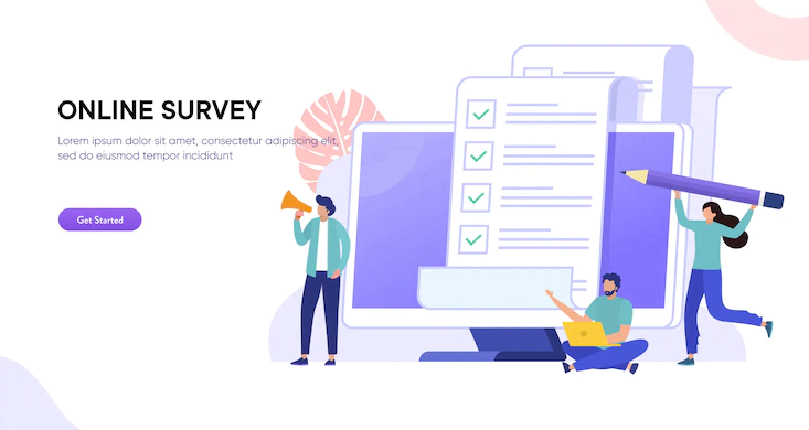 Online polling & survey illustration concept, people filling online survey form on laptop,