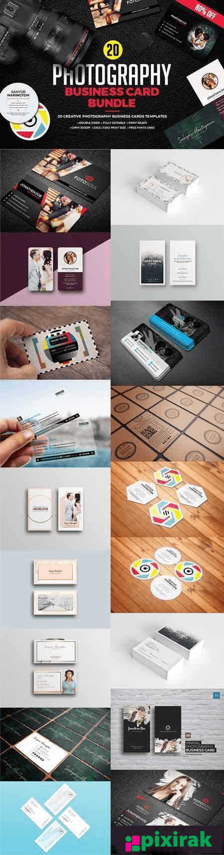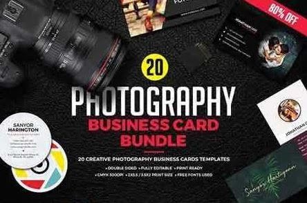 This amazing Photography business cards bundle has an actual shop value of $120 and contains 20 Creative Photography business card templates with different style, design and sizes that are suitable for any kind of photography business or personal use.