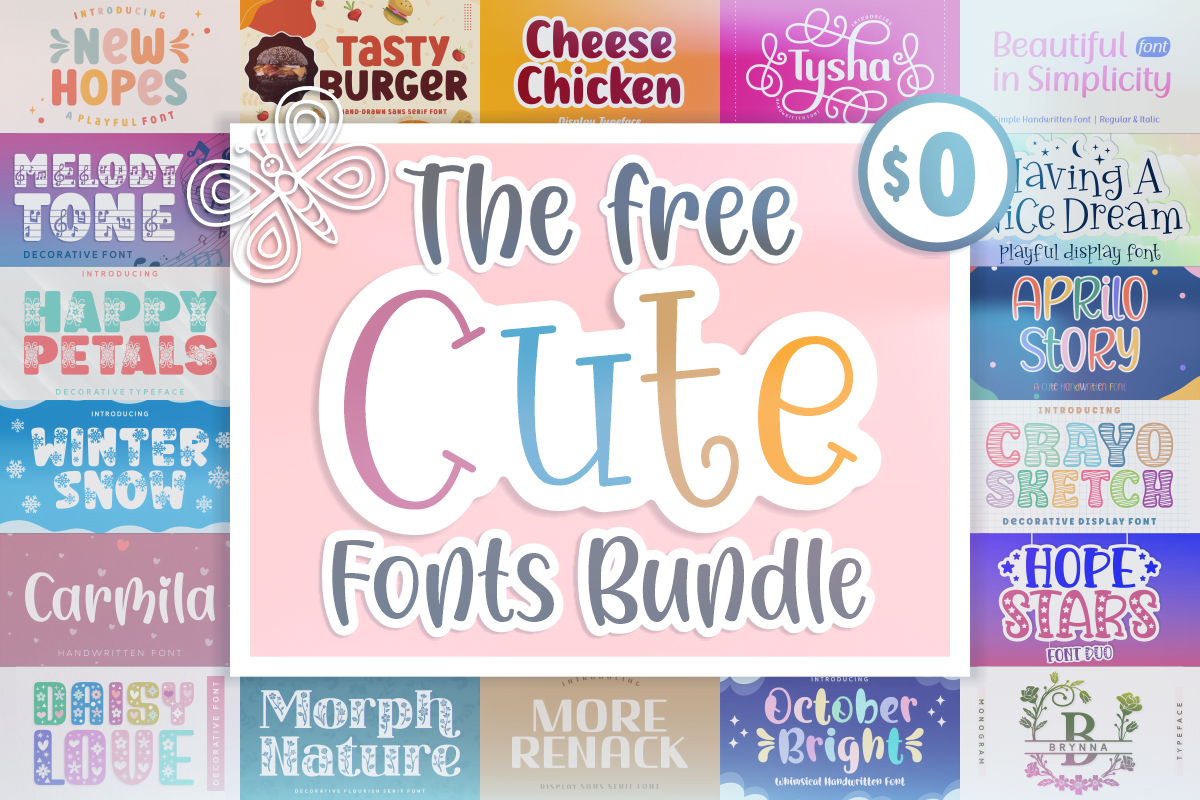 The Free Cute Fonts Bundle can now be yours, completely for free! It includes 20 cute display, decorative, script and handwritten fonts, perfect for crafters to use in all types of crafting projects. All fonts are compatible with crafting cutting machines such as Cricut and Silhouette, and include a lifetime commercial license.