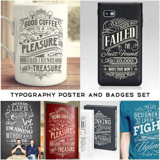 A set of 6 Typography poster and badges which can be used for labels, frame designs, t-shirts templates, book covers, quotes designs, banners, watermark typography poster, flyers and other identity,branding materials, design proposal, marketing graphics, blog headers, and much more.