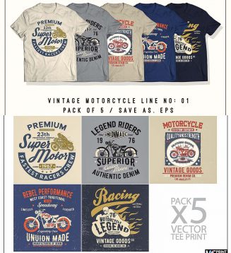 Set of 5 premium motorcycle T-Shirt prints for creating designs.