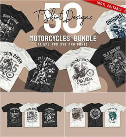 Set of 50 vintage motorcycle T-Shirts designs. You can print on a t-shirt, mug, paper, fabric, poster, canvas, and more merchandising according to your needs. For personal use.