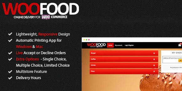 WooFood v2.6.5 – Food Ordering (Delivery/Pickup) Plugin for WooCommerce & Automatic Order Printing is an online Word Press food delivery plugin, an easy-to-use Windows and Theme to create your fast-food, pizzeria, coffee or restaurant online delivery.